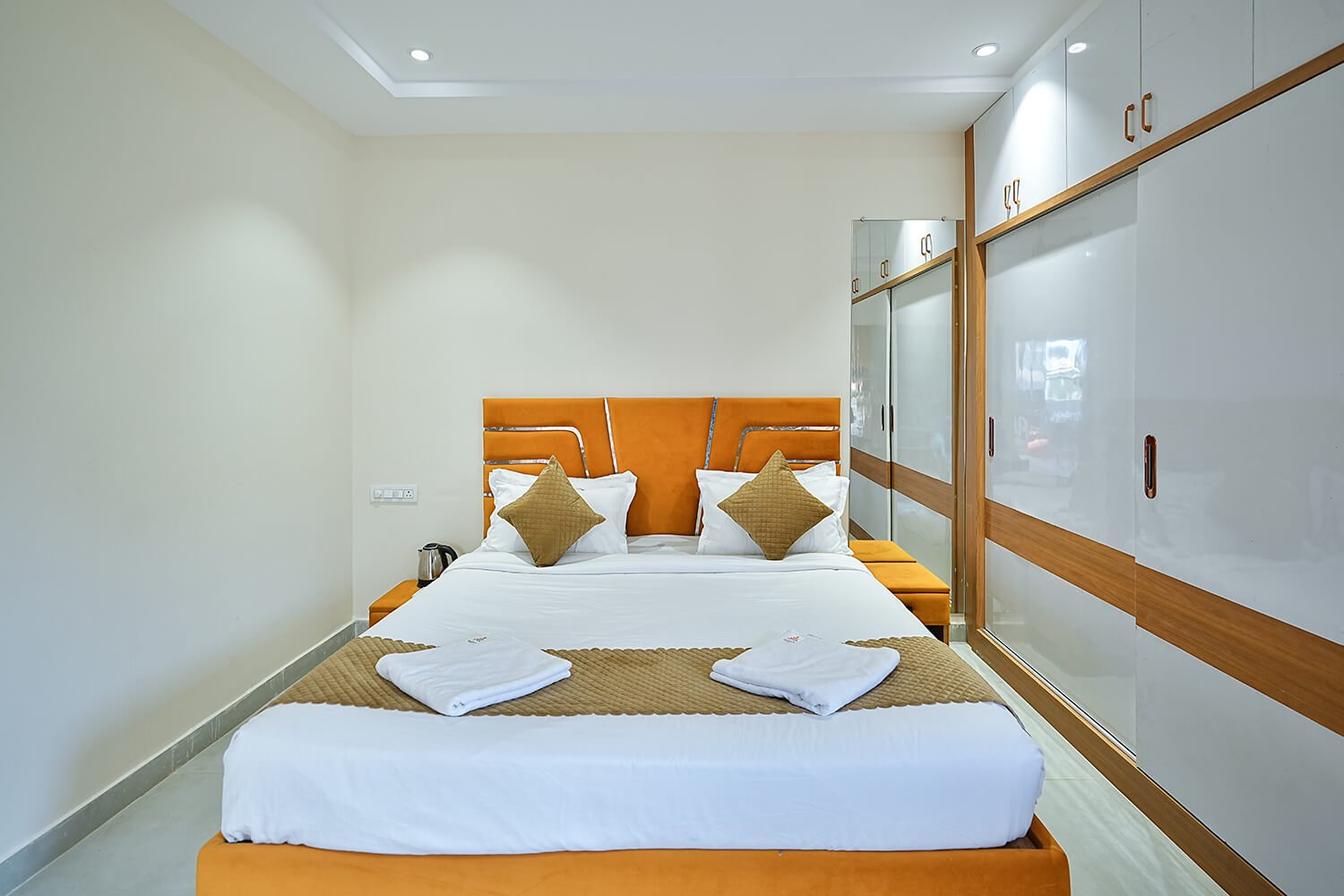 Discover the ideal blend of style, comfort, and convenience in our thoughtfully designed 1BHK Rooms. Choose from King or Twin bed options and unwind in spacious interiors featuring a dedicated work desk, ample storage, and contemporary amenities. Perfect for business, leisure, or event stays — every element is curated to make your experience effortlessly relaxing and refreshingly productive.